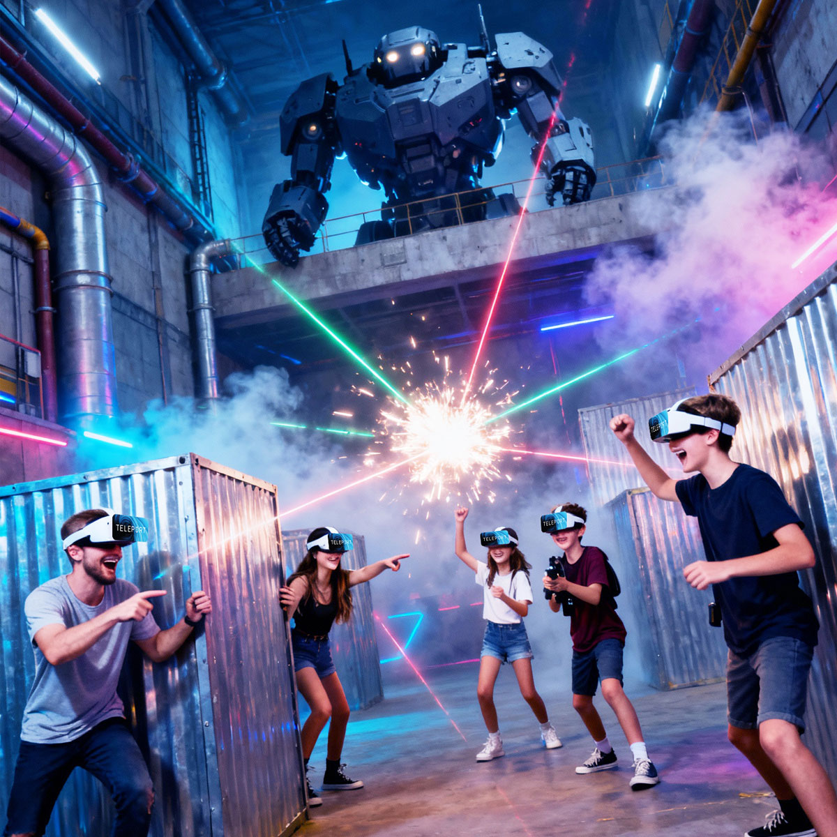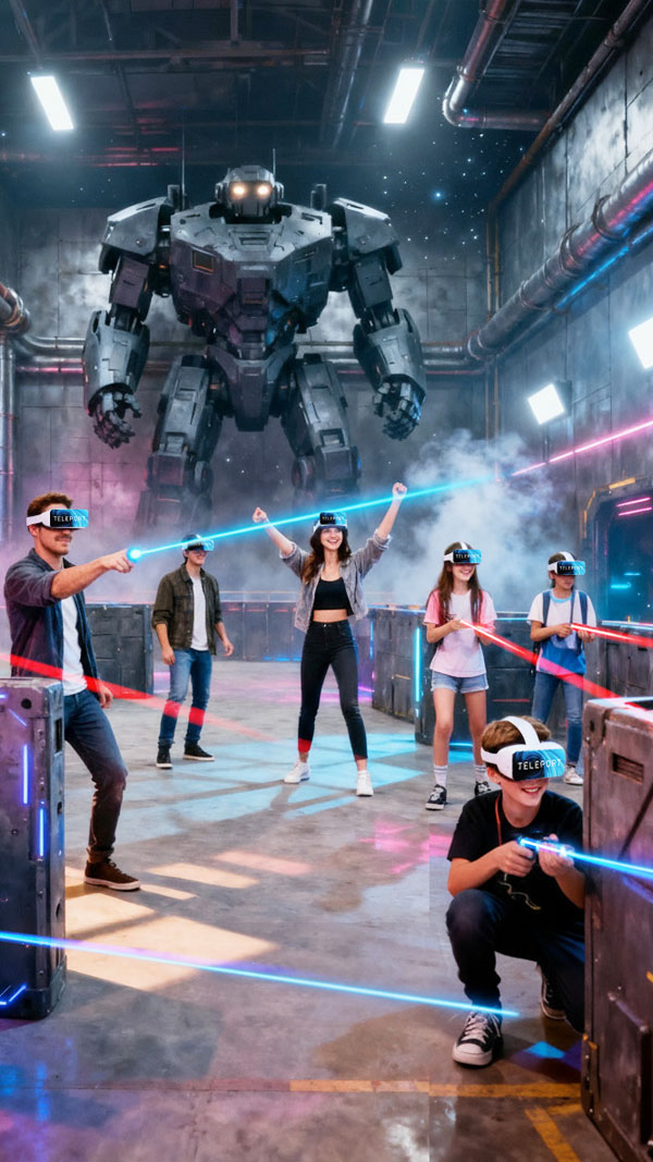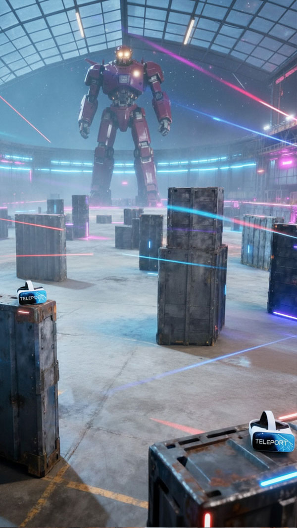 This is Teleport's ultimate competitive VR showdown - a free-roam, multiplayer battle where reflexes, tactics, and
